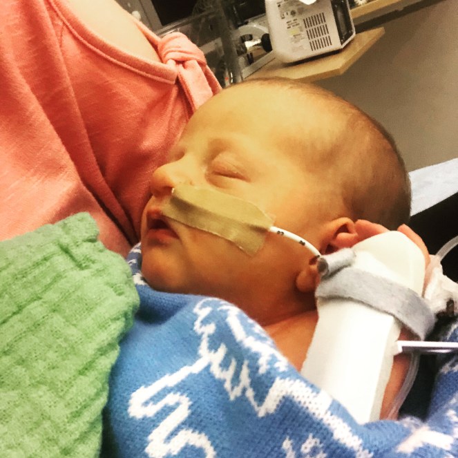 When we arrived the paediatrician wasn’t happy with his tone, or how he was feeding, he immediately sent us to nicu and there he was cannulated antibiotics started and a feeding tube put in place.